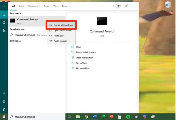 1. Tastam “command prompt” in meniul Start, click dreapta pe program si Run as administrator.