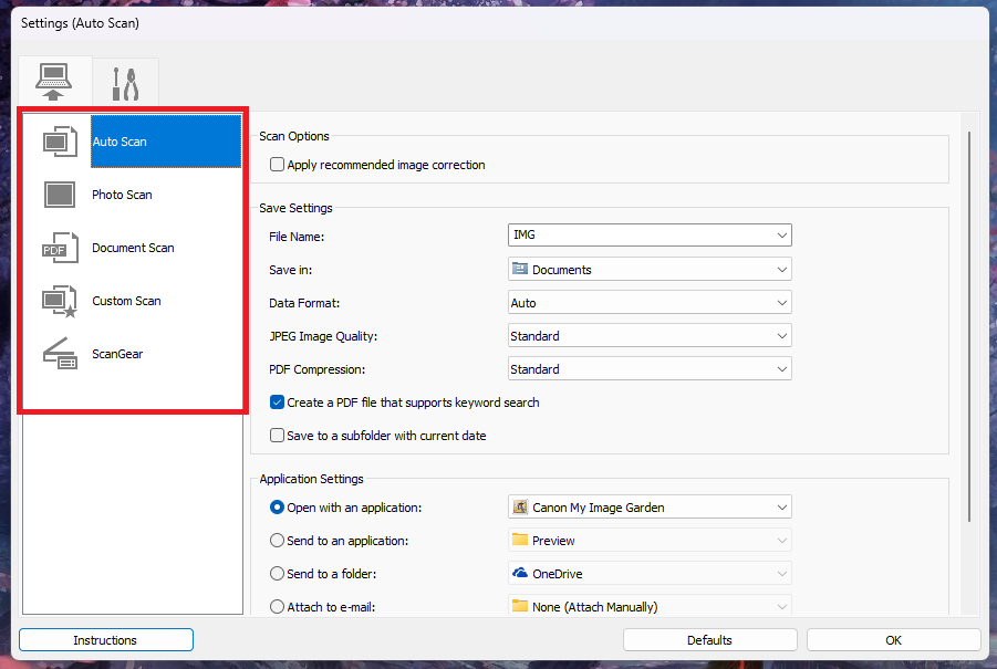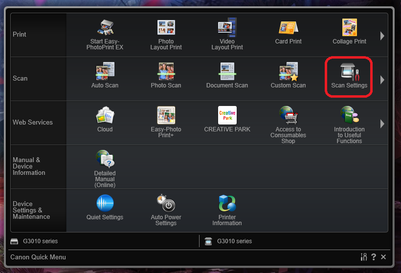 Iar aici aveti toate optiunile disponibile pentru fiecare tip de scan pe care doriti sa il faceti. De exemplu, puteti schimba formatul fisierului scanat, destinatia pentru salvarea acestuia, calitatea imaginii, etc.