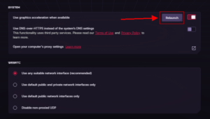 Funcția Use graphics acceleration when available permite browserului să folosească placa video (GPU) pentru o performanță mai bună, oferind o experiență mai fluidă în navigare, video și animații.