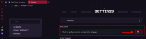Derulează în jos până la secțiunea „Spell Check” și activează opțiunea „Check for spelling errors when you type text on web pages”.
