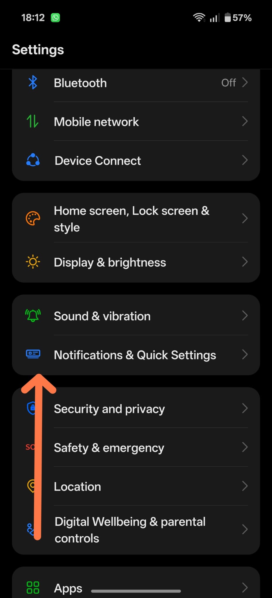 Pasul 2: Cauta sectiunea Notificari (Notifications)
