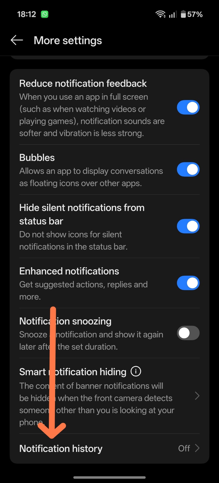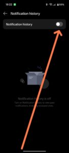 Pasul 4: Cauta optiunea Istoric notificari (Notifications history)