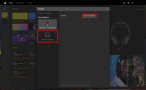Conectati dongle-ul castilor la computer, iar configurarea se va face automat, dupa care va trebui sa faceti update-urile de firmware necesare. Incepeti prima data cu dongle-ul castilor, click pe iconita de setari al acestuia.