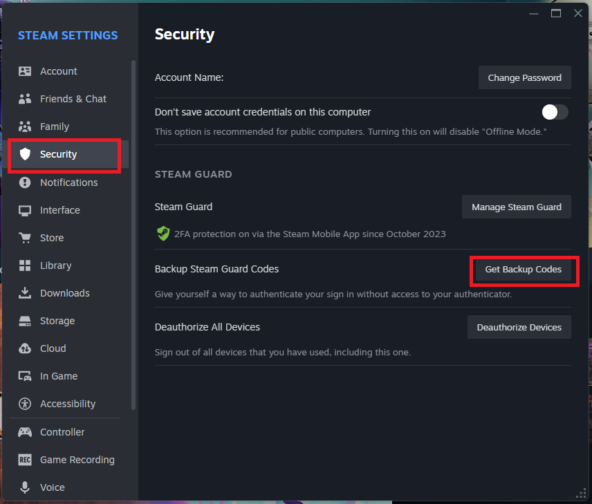 Aici din meniul din partea stanga selectati “Security”, iar in partea dreapta selectati “Get Backup Codes”