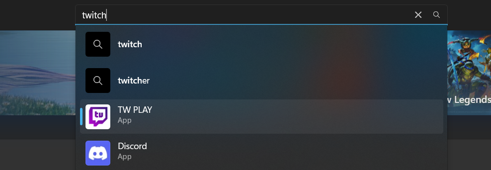 Cautăm din bara de “search” aplicația Twitch și dăm click pe TW PLAY ca în imagine.