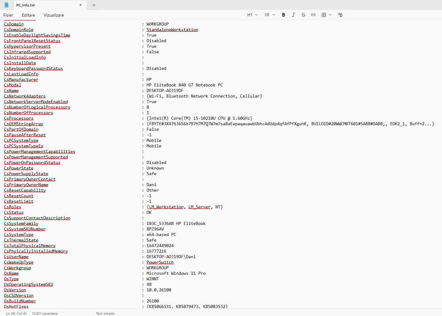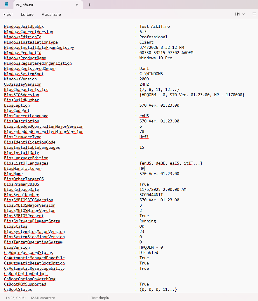 Vrei să ai toate informațiile importante despre calculator într-un singur fișier: hardware, sistem de operare, memorie, procesor etc.