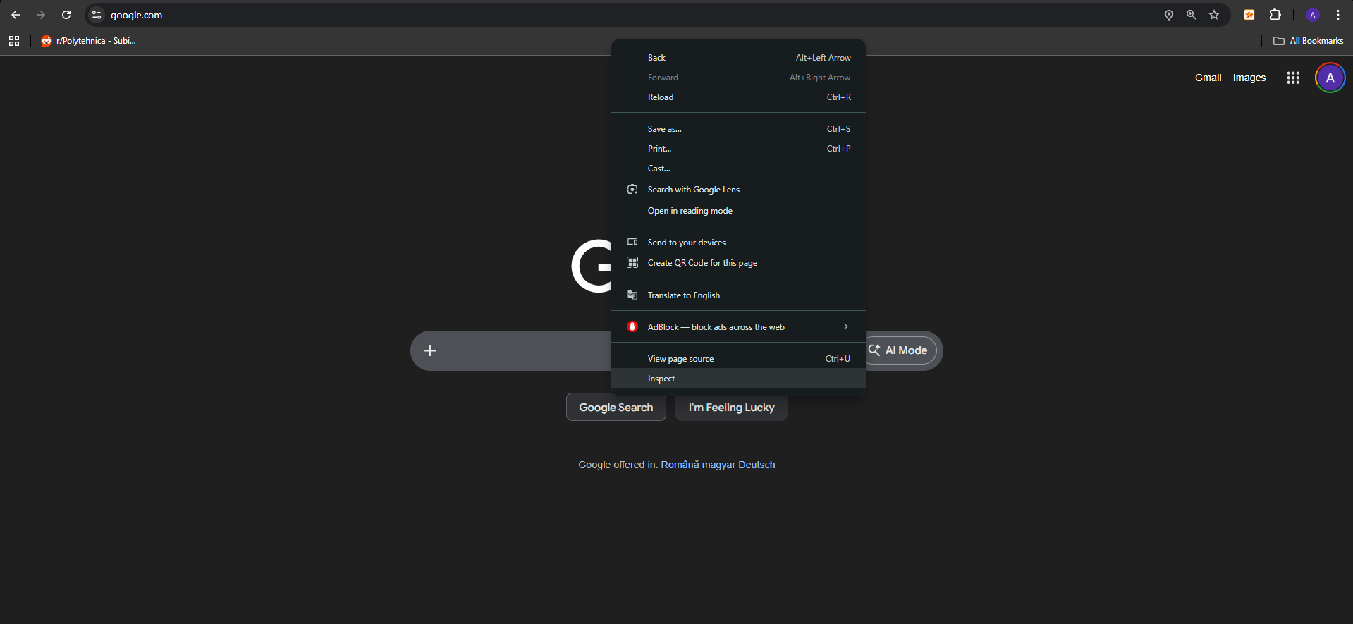 Pasul 3: Da click pe “Inspect” (ultima optiune)