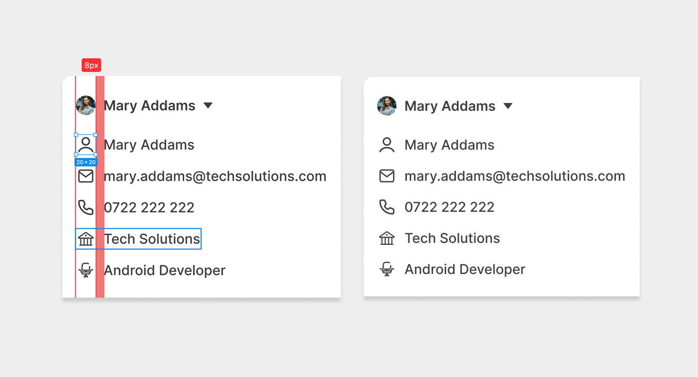 Un detaliu aparent minor, dar care face o mare diferență în designul de interfață, este alinierea iconițelor cu textul. Mulți designeri le fac fie prea mari, fie prea mici, ajustându-le manual până când „par ok”. Dar există o regulă simplă care îți asigură un aspect profesionist de fiecare dată.