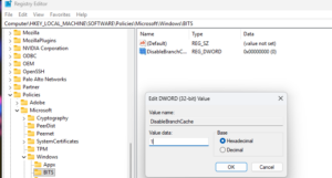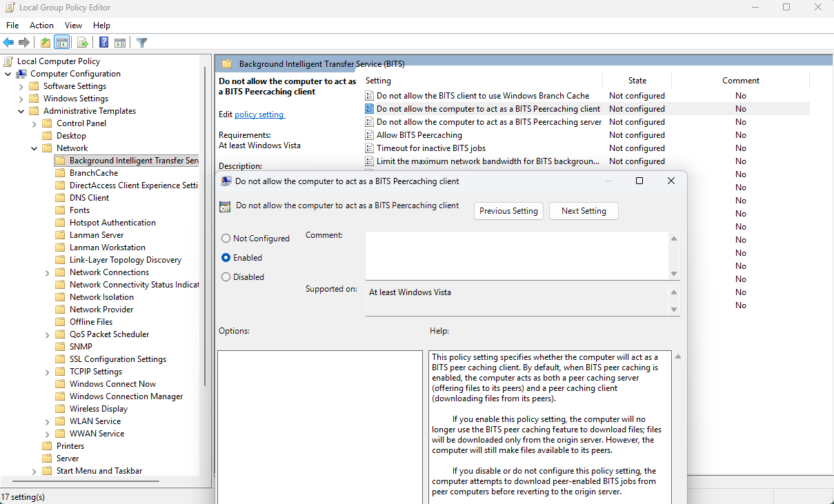 Do not allow the BITS client to use Windows Branch Cache setam pe Enabled