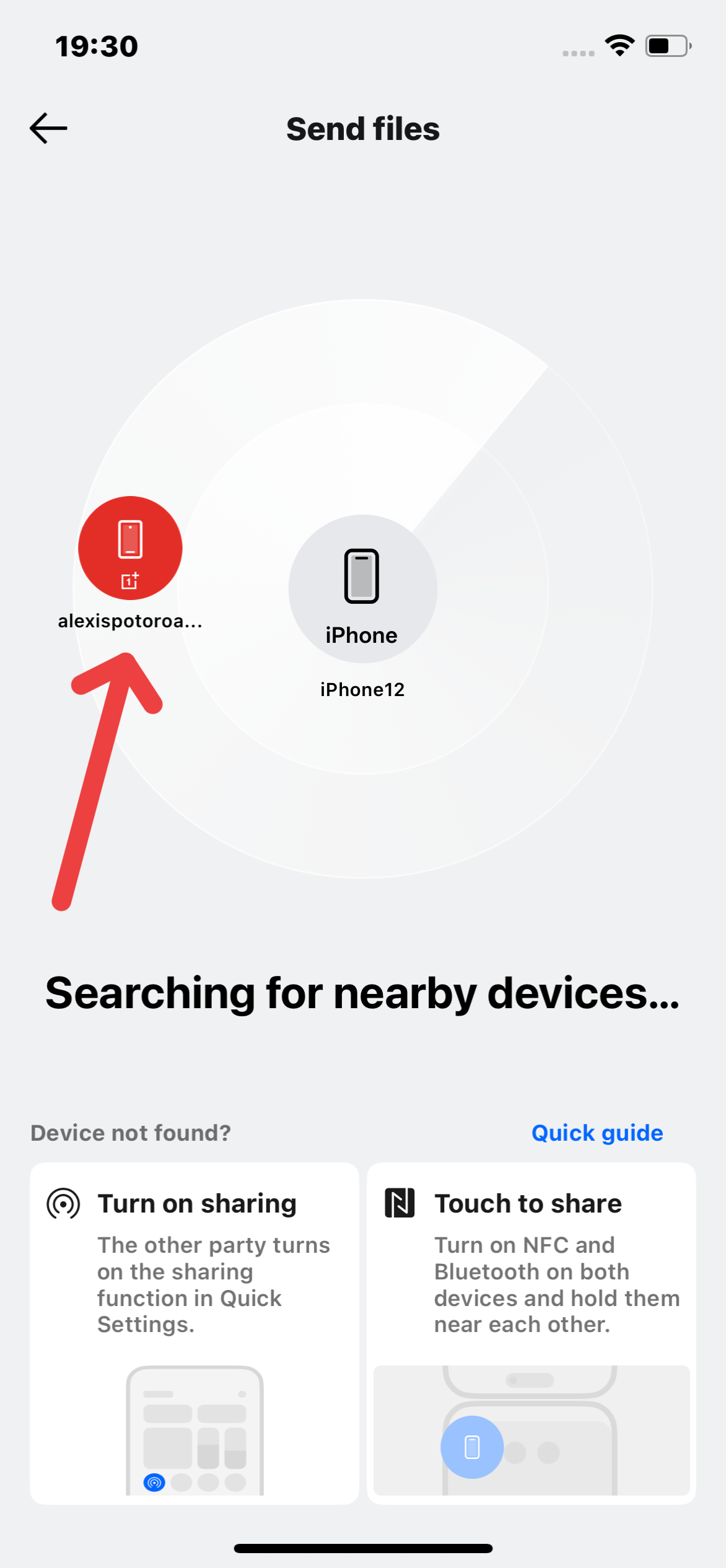 Selecteaza iPhone-ul de pe ecranul OnePlus-ului