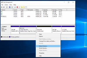 - Apoi, faceți click dreapta pe partiția rămasă pe care doriți să o măriți și faceți click pe opțiunea „Extend Volume”.