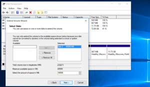 - Acceptați opțiunile implicite pentru a mări partiția la cantitatea maximă de spațiu disponibil. Se va extinde în spațiul liber rămas în urmă după ce ștergerea partiției.