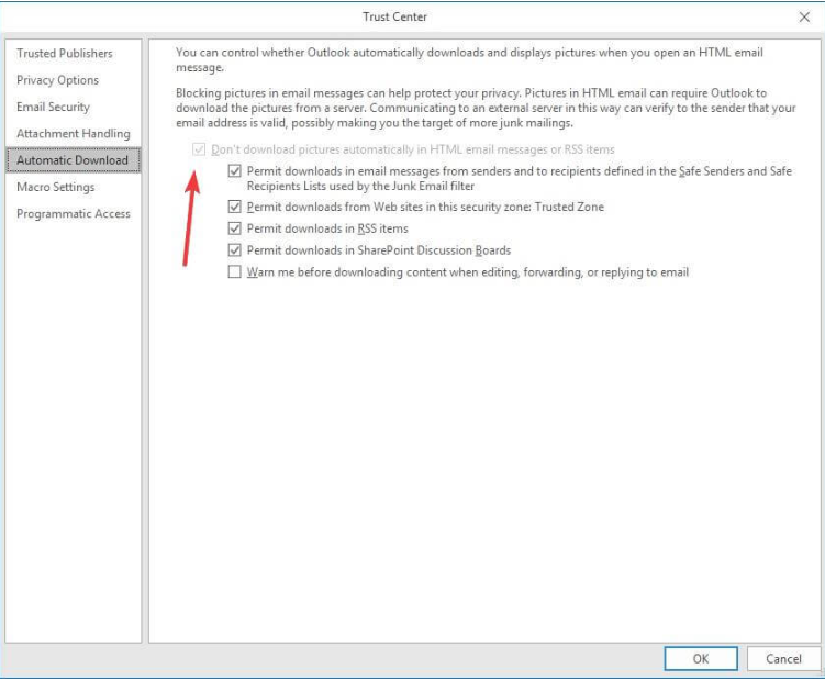 Microsoft Outlook vine cu o caracteristica care nu permite descarcarea fisierelor in mod automat in email.