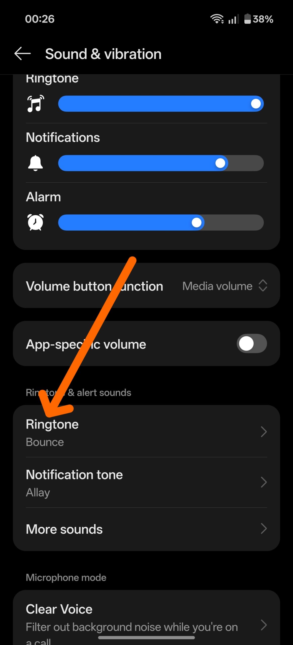 Deschide aplicatia Setari (Settings) a telefonului si acceseaza meniul Sunet si vibratie (Sound & vibration).
