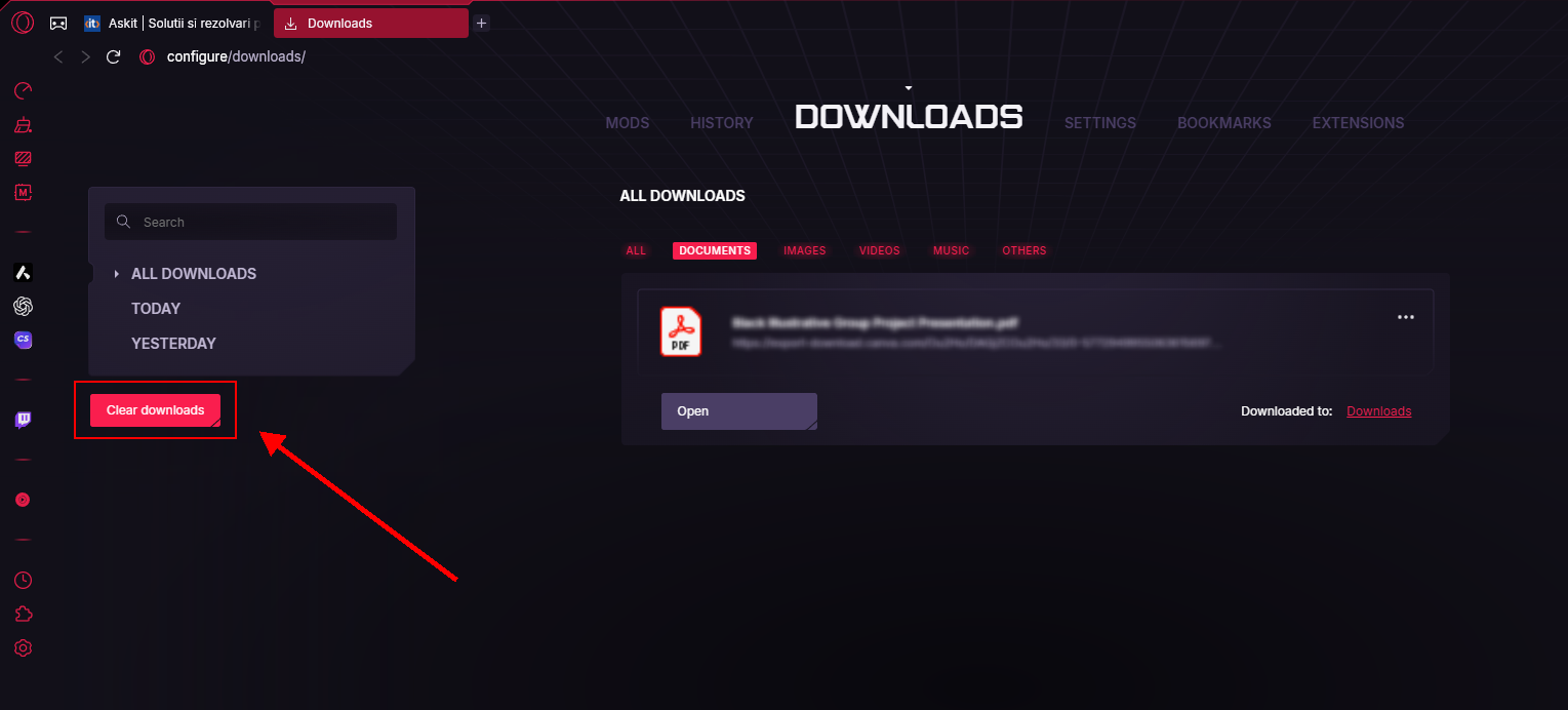 Vrei să păstrezi browserul curat și organizat? Iată cum poți șterge rapid întreaga listă de descărcări din Opera GX: