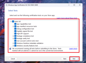Aici puteti alege ce teste urmeaza sa fie rulate, recomandarea fiind ca toate teste sa ramana bifate.