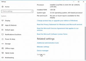 Accesati meniul start si scrieti “system”, apoi click stanga pe “About your PC”, dati scroll si dati click stanga pe “System info”.