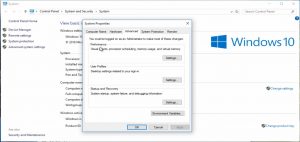 Dati click pe “System protection”, iar dupa ce apare fereastra “System Propreties”, apasati pe “Advanced” apoi apasati settings la “Performance”.