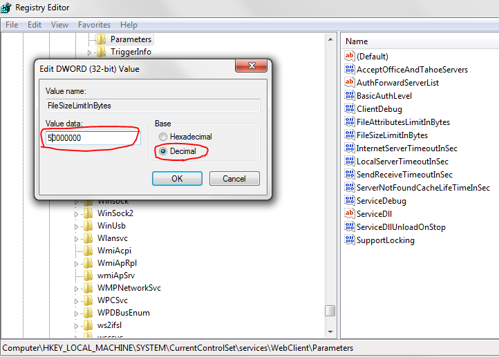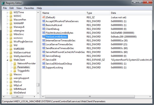 2. După aceasta răsfoiți la HKEY_LOCAL_MACHINE \ SYSTEM \ CurrentControlSet \ Services \ WebClient \ Parametri