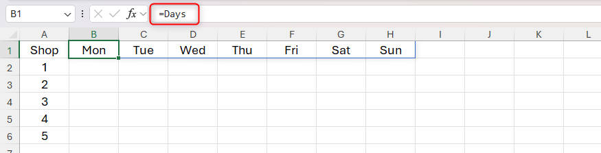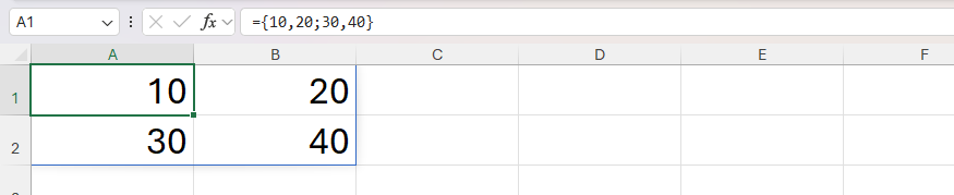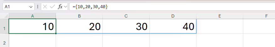 One-off versions of Excel from 2021 onward, Excel for Microsoft 365, and Excel for the web all support dynamic array formulas. This means that when you type an array constant in a formula that expects multiple values and press Enter, the result spills into the adjacent cells, with only the top-left cell containing a formula.
