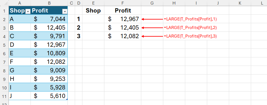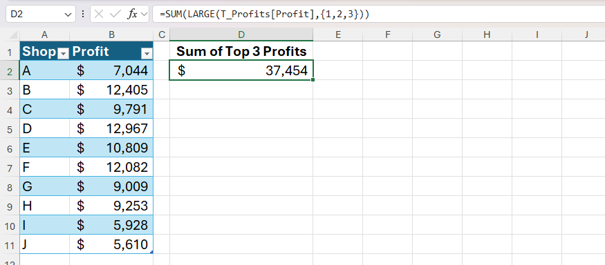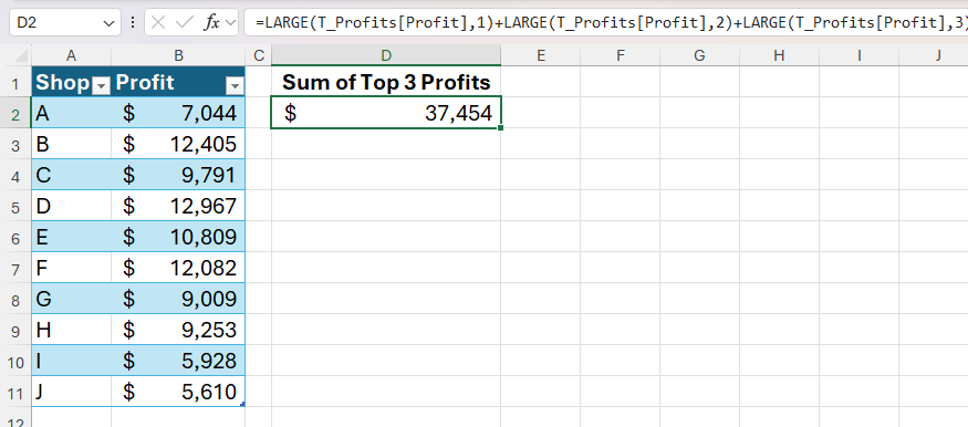 =LARGE(T_Profits[Profit],1)+LARGE(T_Profits[Profit],2)+LARGE(T_Profits[Profit],3)