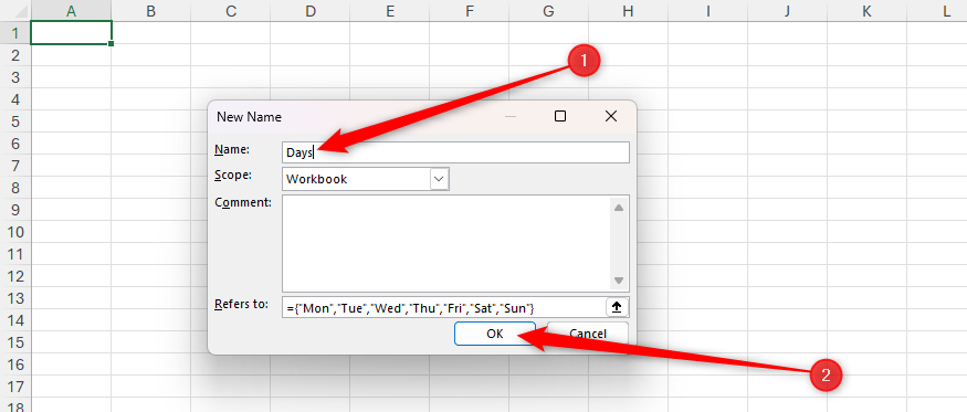Finally, in the Name field, type a memorable name for your array constant, and click “OK”