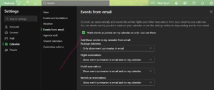 Settings (roata dințată) > Calendar > Events and invitations./Events from email