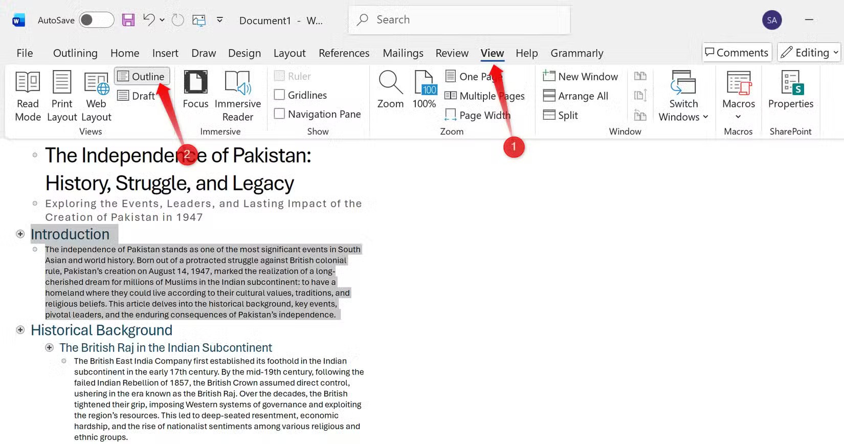 Reading or editing long essays, articles, or reports can quickly become overwhelming—scrolling endlessly just to find a section breaks your focus. That’s where Outline View comes in handy. It turns your document into a clean, collapsible list of headings and subheadings, letting you jump between sections, rearrange ideas, and collapse paragraphs with ease.To enable it, go to the “View” tab and click “Outline.” With your document structure laid out in front of you, navigating, organizing, and refining your work becomes effortless.