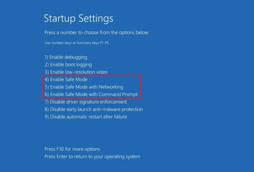 6. Select “4” or press the “F4” key to boot the computer in the Safe Mode environment.