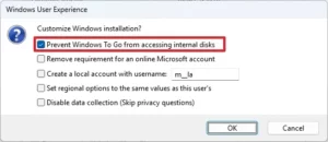 13. (Optional) Check the “Prevent Windows To Go from accessing the internal disks” option