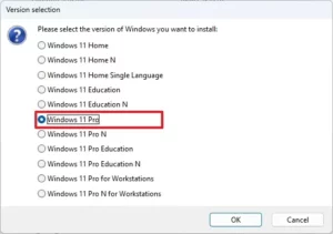 12. Select the edition of the operating system to install on the USB drive. For example, Windows 11 Pro