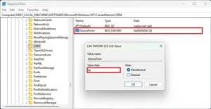 30. Right-click the OEM key, select the New submenu, and choose the “DWORD (32-bit) Value” option