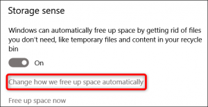 3.Under the “Storage Sense” section on the right, click the “Change how we free up space automatically” link.