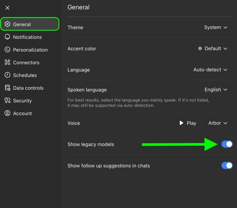 The setting takes effect immediately in the web interface, where you’ll find GPT-4o listed under “Legacy models” in the model selector dropdown.