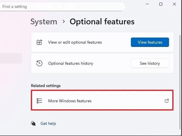 4. Click the “More Windows features” settings under the “Related settings” section.