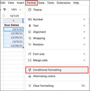 With conditional formatting, you can highlight data on your spreadsheet automatically. If you have a sheet where you need the dates easier to spot, you can use conditional formatting in Google Sheets based on date.