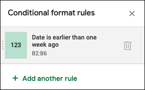 - To set up another formatting rule in the same sheet or for the same set of cells, select “Add Another Rule” and follow the process above.