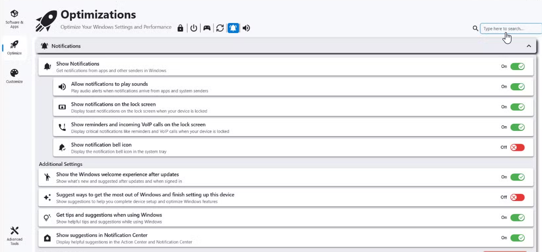 Utilizarea Winhance pentru a dezactiva notificările Windows