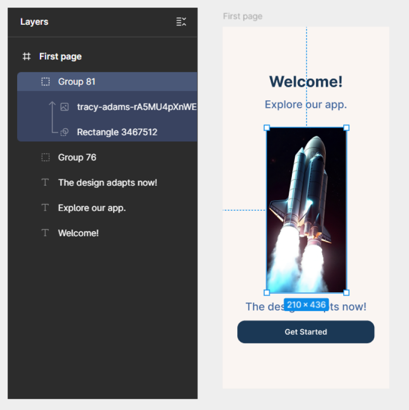 - Dezactivează „Clip content”: Selectează frame-ul și debifează „Clip content” din panoul din dreapta. Acum vei vedea și poți selecta elementele care depășesc frame-ul.