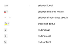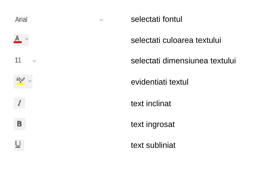 Pentru a seta tipul, dimensiunea si culoarea fontului utilizati pictogramele corespunzatoare situate in fila Home a barei de instrumente.