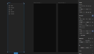 Avem unsidebar cu 5 optiuni (Home, Products, Mail, Calendar, Contacts) respectiv cele 5 pagini aferente lor. Fara componente, fiecare pagina trebuie sa fie legata individual la toate celelalte 4 pagini. In plus, designerul trebuie sa modifice manual starea activa a sidebar-ului pe fiecare frame de destinatie (ex: daca treci de pe Home pe Products, trebuie sa creezi un frame nou unde Products este activ). Astfel, rezulta un prototip lent, peste 20 de linkuri doar pentru navigarea primara si modificari de design greoaie.