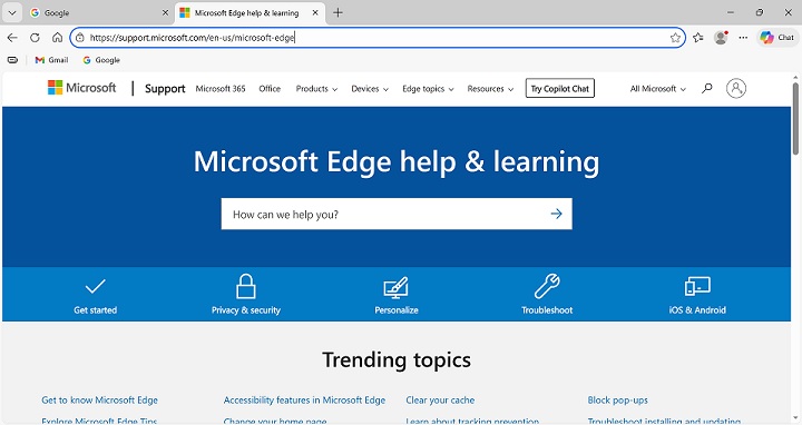 Apasand tasta F1 observam ca se deschide un tab nou cu pagina de suport, in care putem face research pentru problema noastra.