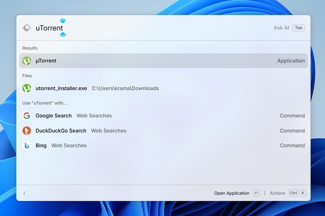 In addition to all the features mentioned above, Raycast also offers several other useful tools you should know about. The first is obviously its ability to search for any apps or files on your computer. Simply open Raycast, type the name of the file or app you’re looking for, and press Enter. The search and launch speed is so fast that I’ve completely replaced the Start menu with Raycast.