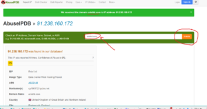 - Utilizam tool-ul web https://www.abuseipdb.com/check