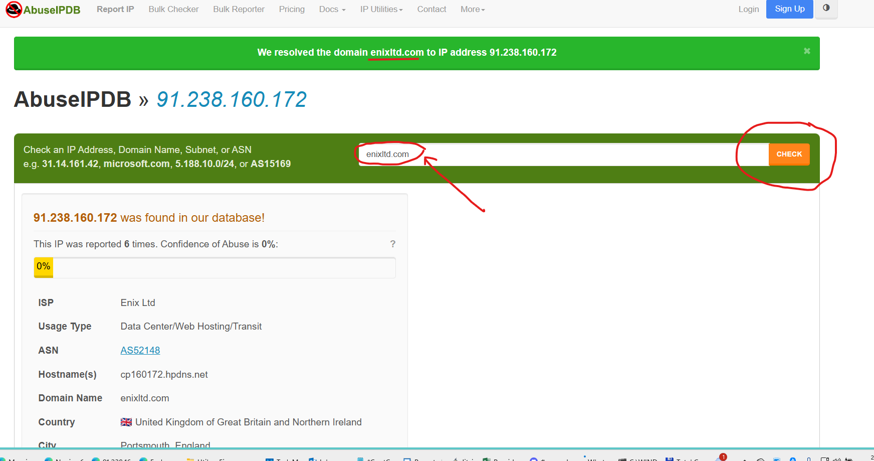 Se observa ca domeniul si ip-ul corespunzator sunt deja raportate de 6 ori.